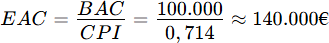 - BAC (Budget at Completion): 100.000 €