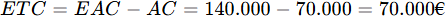 - Tatsächliche Kosten (AC): 70.000 €