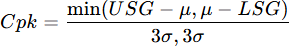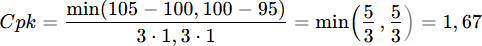 Cpk berücksichtigt zusätzlich die Lage des Mittelwerts des Prozesses innerhalb der Toleranzgrenzen: